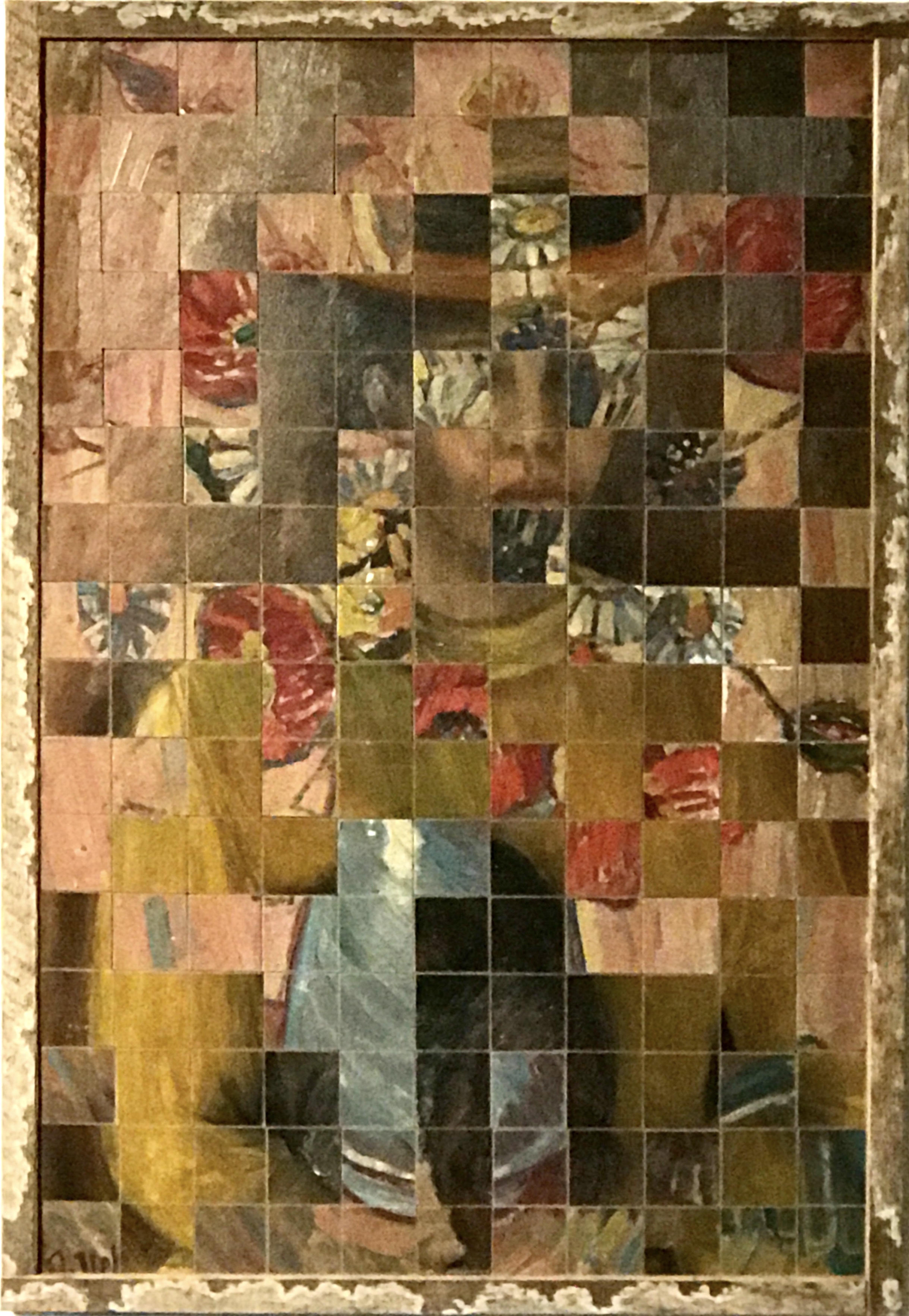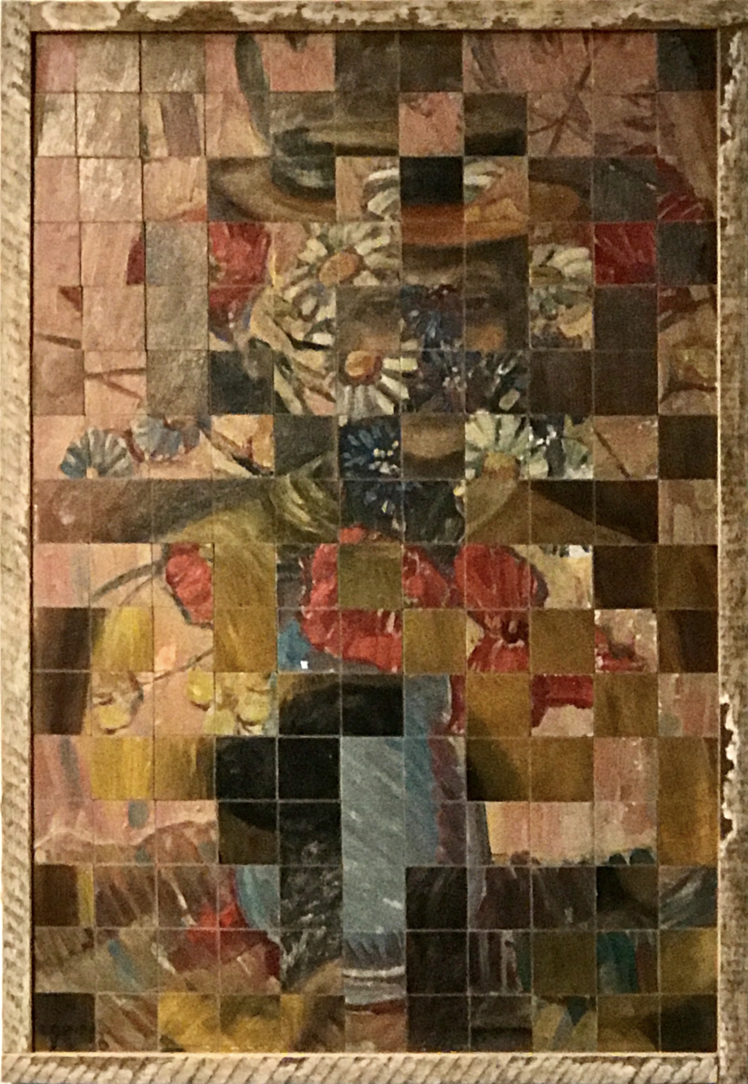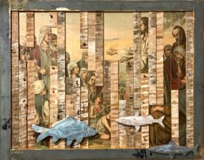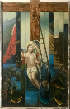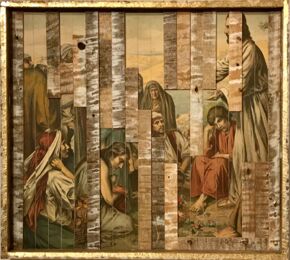 Alte Gemälde, zerschnitten, häufig mit einem zweiten Fundbild zusammen gesetzt, ergeben neue Perspektiven. Unmögliches entsteht, fast surreal... Größenverhältnisse verschieben sich. Details können in den Vordergrund geschoben werden oder schaffen einen überraschenden Rhythmus in einer Fläche.