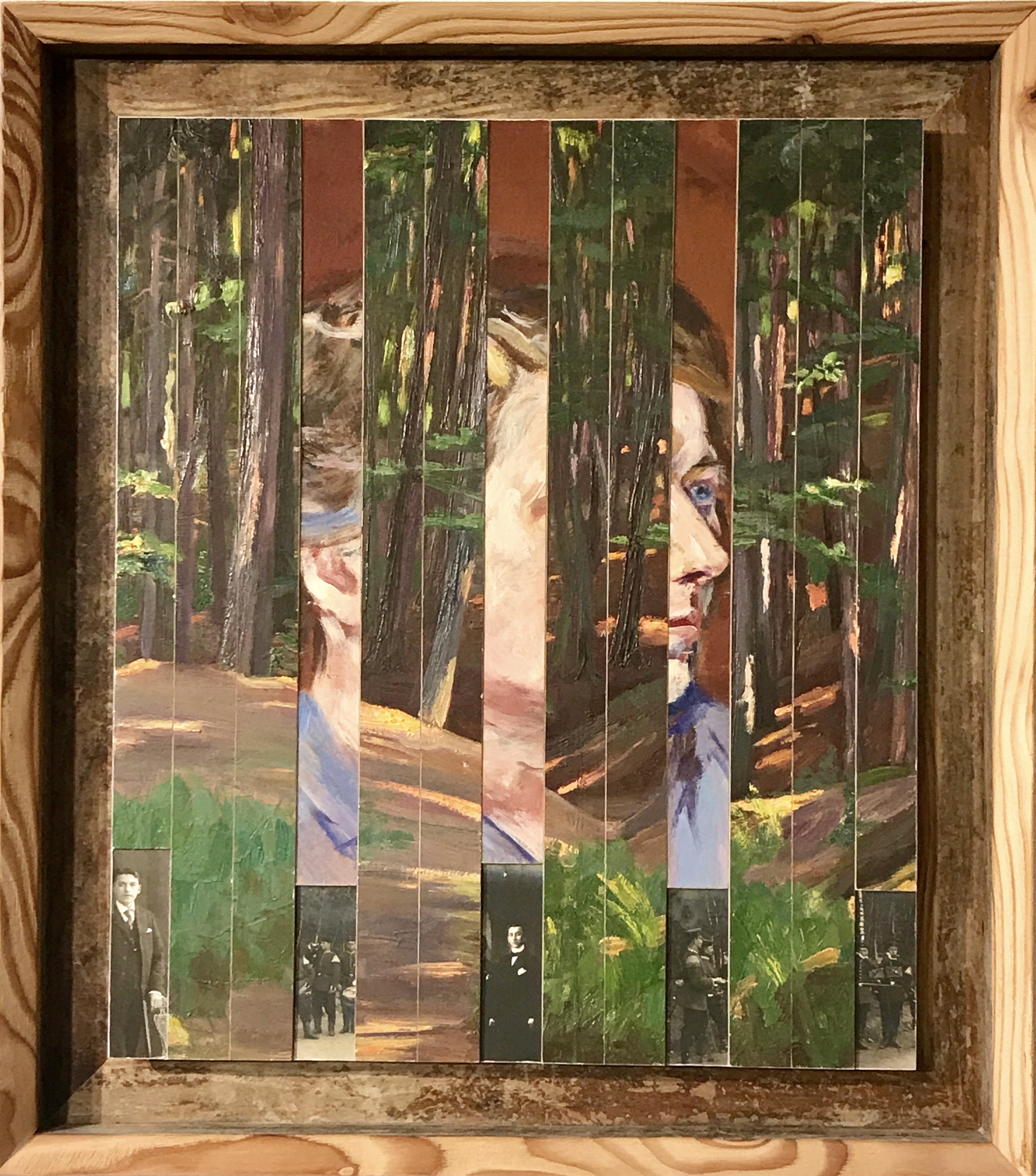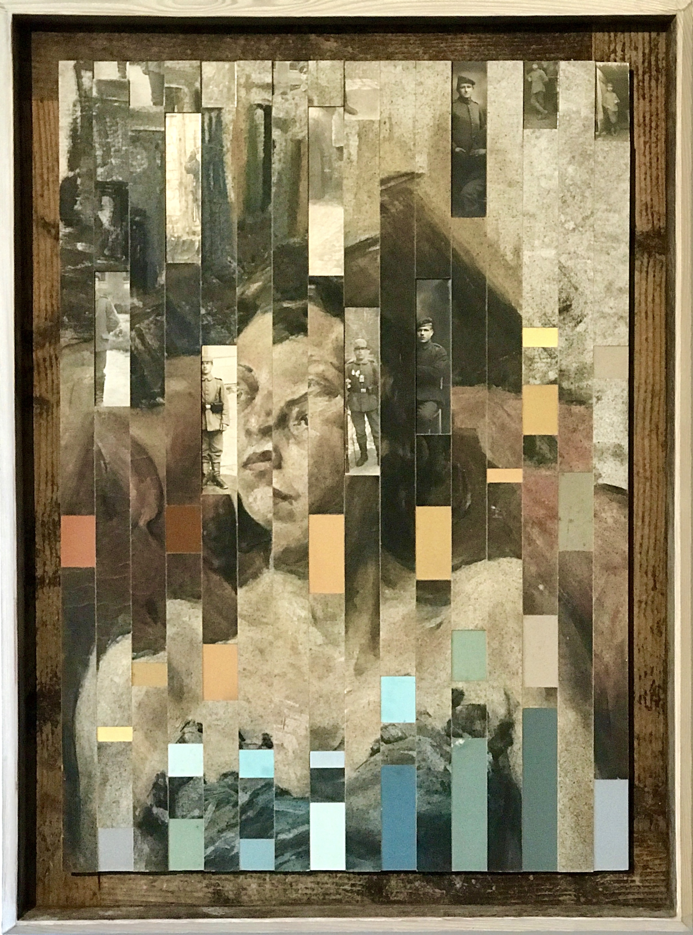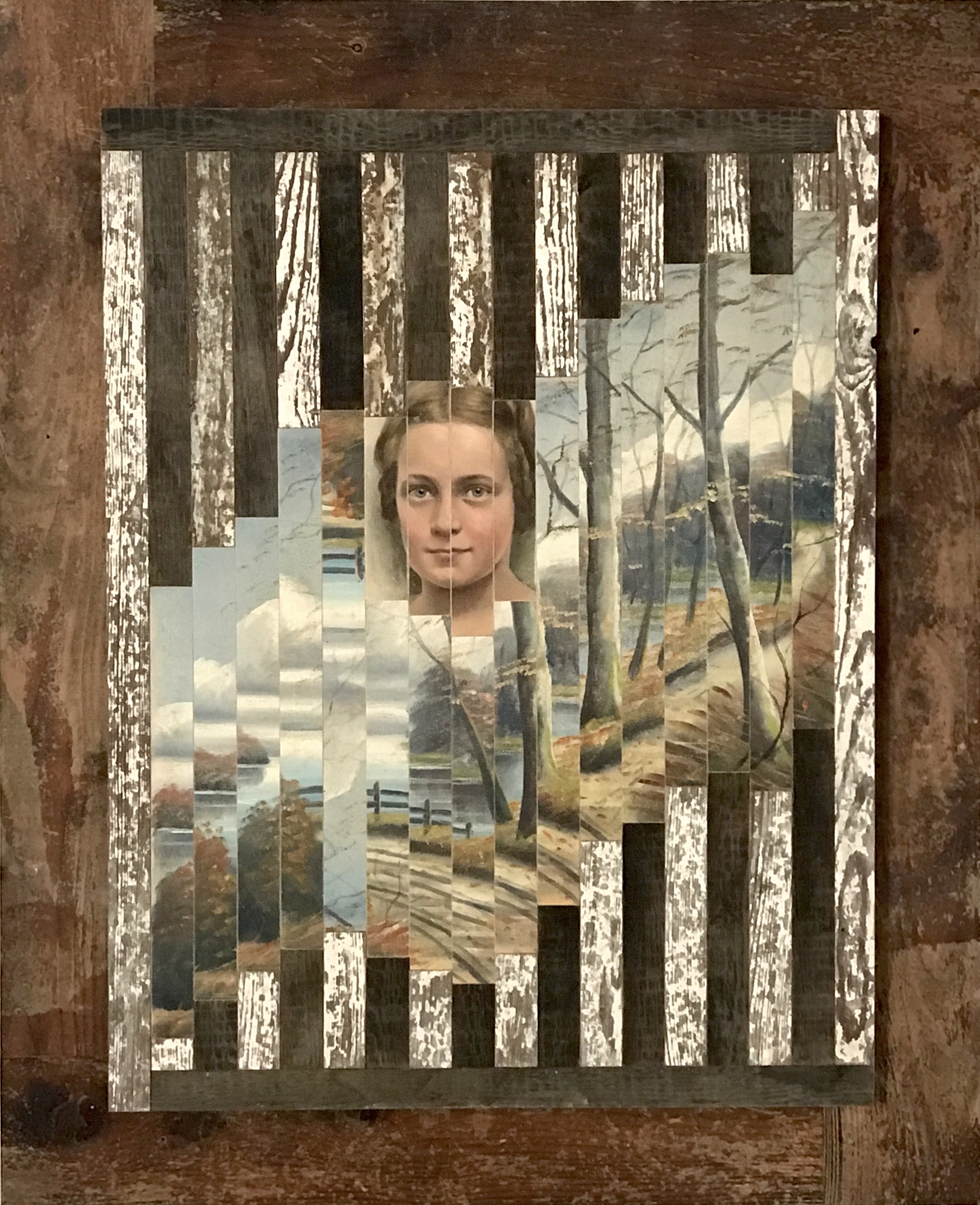 Als zusätzliches Element können sogar noch Fundhölzer, oft einfach verwitterte Bretter, eine weitere Komponente bilden. Auch hier bestehen die angefertigten Rahmen meist auch aus alten gefundenen Holzstücken. Diese Art der Arbeit habe ich erst Anfang 2018 begonnen. Ich bin da fast in einem Rausch, so mit Perspektiven und Fundmaterialien eine neue Bildwelt zu schaffen.