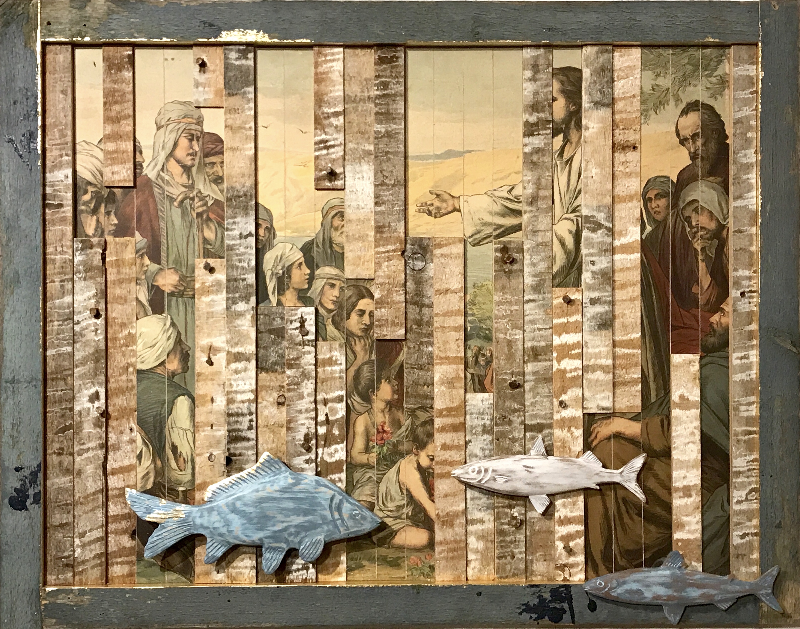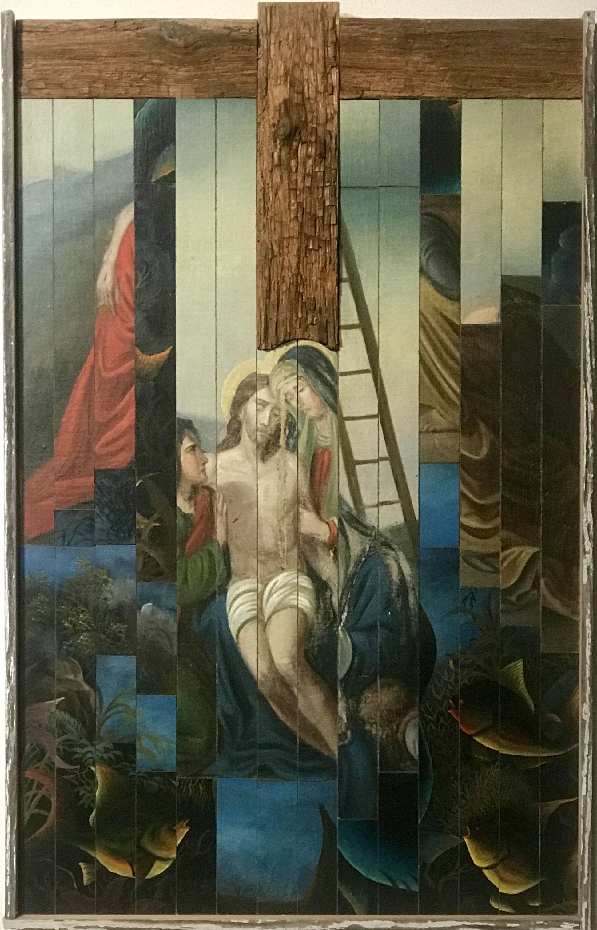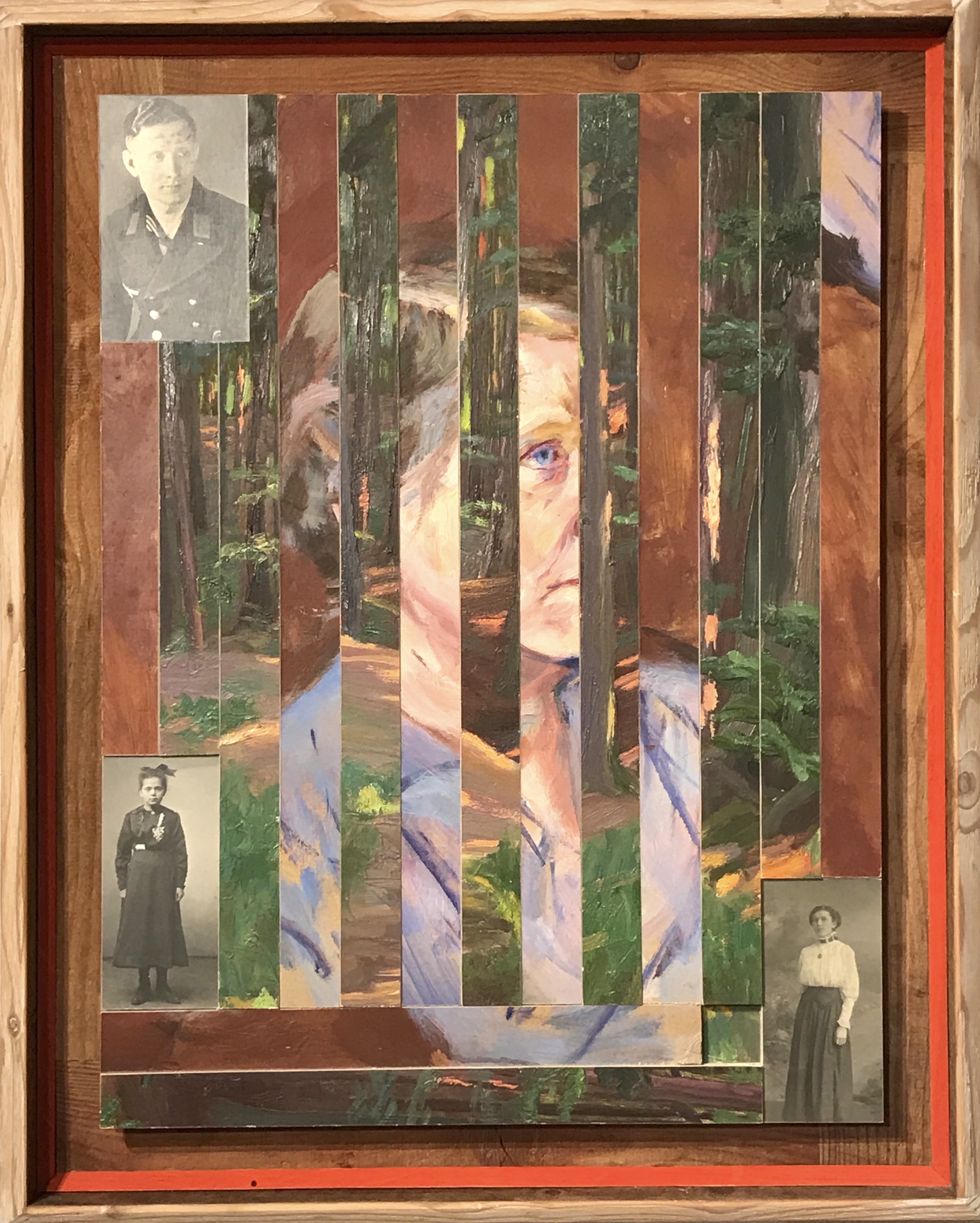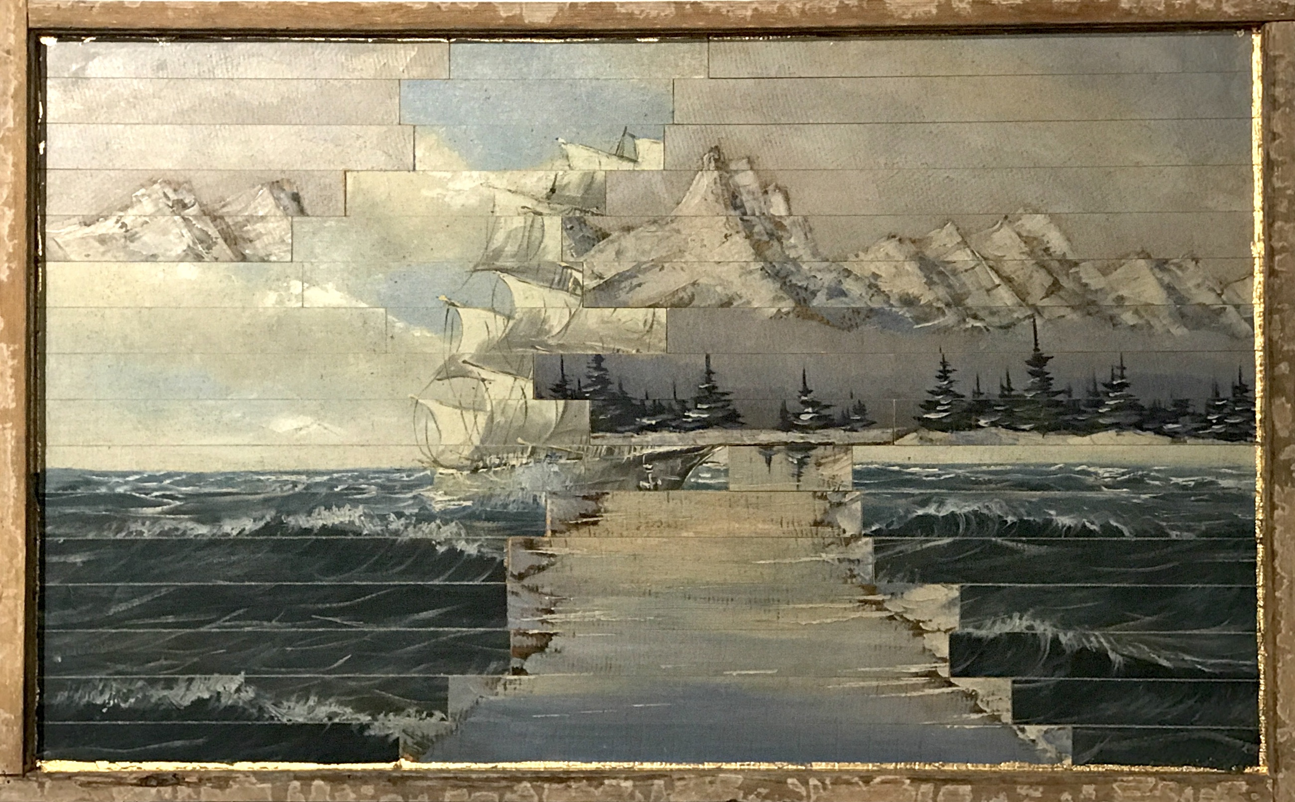 Als zusätzliches Element können sogar noch Fundhölzer, oft einfach verwitterte Bretter, eine weitere Komponente bilden. Auch hier bestehen die angefertigten Rahmen meist auch aus alten gefundenen Holzstücken. Diese Art der Arbeit habe ich erst Anfang 2018 begonnen. Ich bin da fast in einem Rausch, so mit Perspektiven und Fundmaterialien eine neue Bildwelt zu schaffen.
