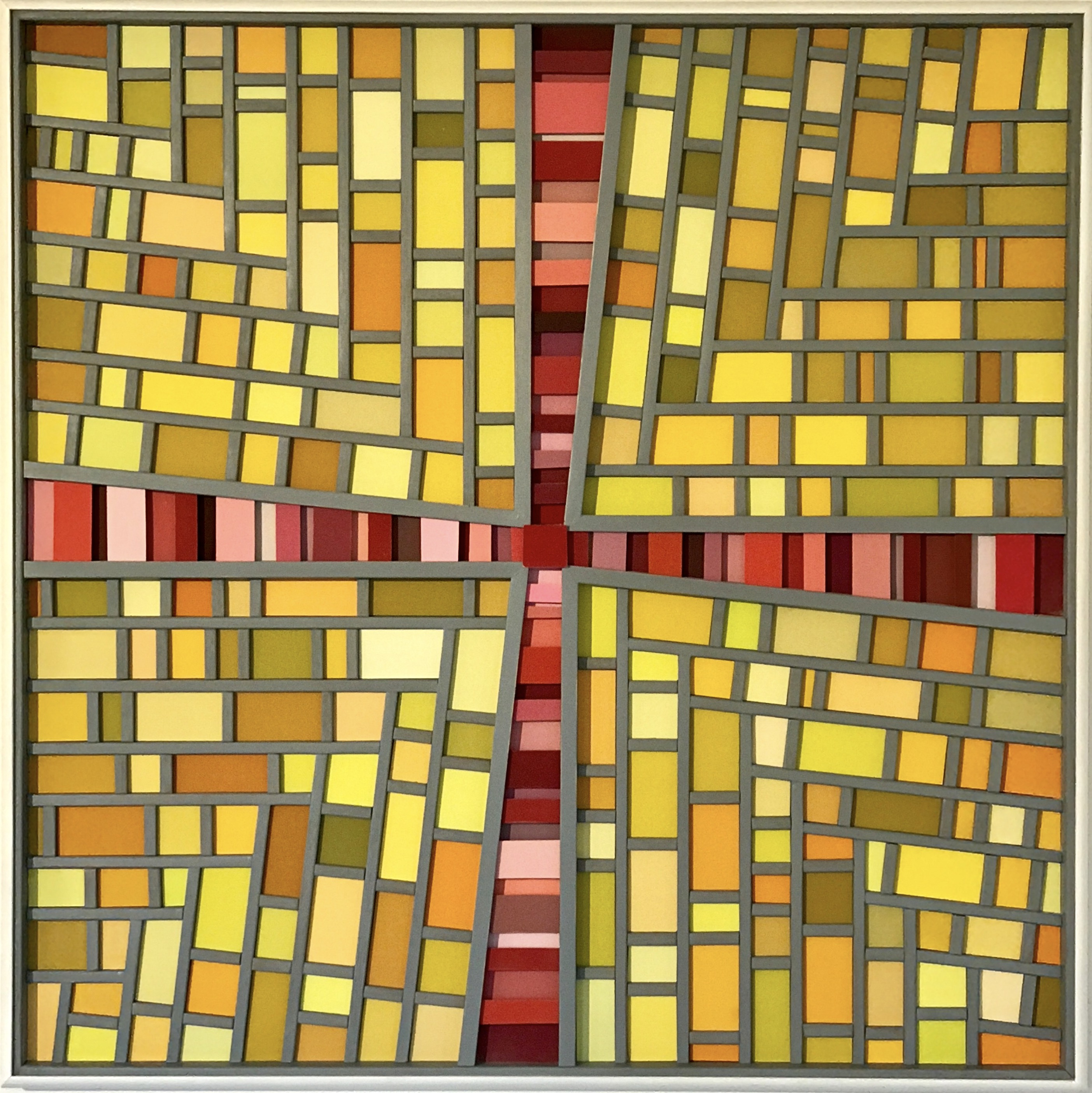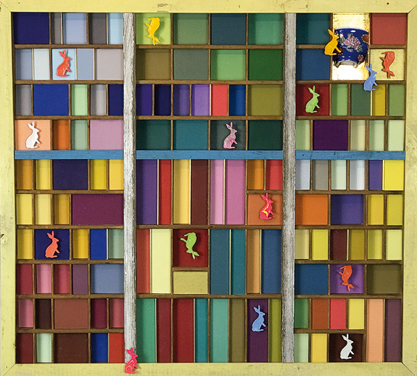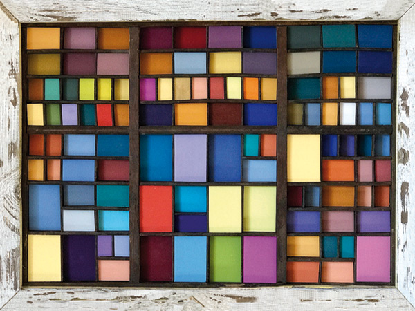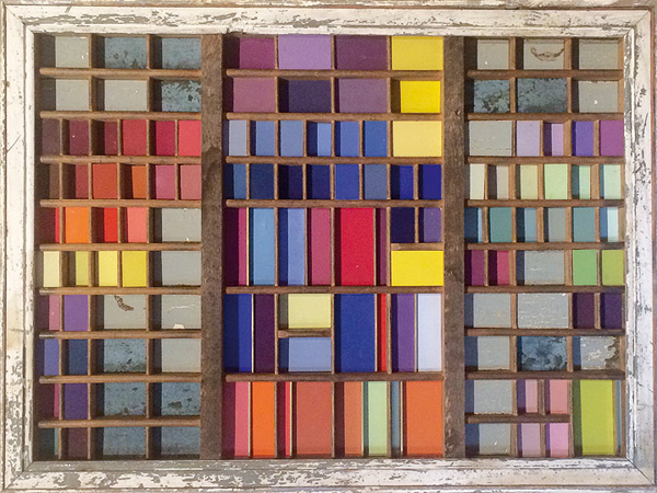 Oft ist in dem Finden der Farben schon ein Konzept für ein dann zu entstehendes Bild gelegt. Die Zeit, der Prozess einer Verwitterung schafft einen Zauber, der sich einem Bildthema partnerschaftlich zur Seite stellt. Es liegt in meiner Biografie: Immer schon - auch als Kind - war ich auf der Suche nach solchen Boten einer vergangenen Zeit. Die Bildwerdung ist immer verbunden mit dem Aufschließen dieser rudimentären Erinnerungen an Farben und gemachte Funde. Die Farbkästen, Farbmühlen sind ein Versuch, Farben und Rhythmus in einen Einklang mit Fundfarben zu bringen.